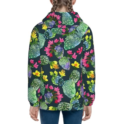 Watercolor Cactuses Kids Pullover Hoodies Boys Zip Up Sweatshirts Girls Athletic Clothes with Pocket 4