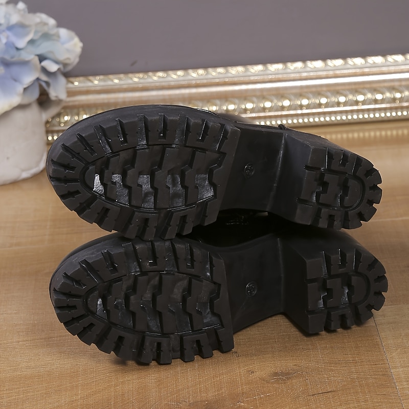 Highlights [Fabric] Crafted from premium PU material, these women's mid-calf boots combine durability with a sleek black finish, perfect for the fall and winter seasons. The material ensures comfort and resilience, making these boots a reliable choice for everyday wear. [Fit] Featuring a comfortable mid-calf height with a sturdy chunky block heel measuring between 2 to 3 inches, these boots provide both style and support. The round toe design adds a touch of vintage elegance while ensuring ample room for your toes. [Design Highlights] These boots boast a contemporary industrial style with a practical lace-up front and a convenient side zipper closure for easy wear. The subtle stitching details enhance the minimalist aesthetic, while the rugged rubber outsole ensures excellent traction on various surfaces. [Occasions] Ideal for daily wear, work, and outdoor adventures, these boots blend effortlessly with any casual or chic outfit. Whether you're navigating urban landscapes or enjoying a casual day out, these boots offer style and versatility. [Size Information] Available in a range of sizes to suit different preferences, including US5.5 to US9, providing a perfect fit for all-day comfort.