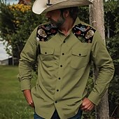 Why Choose Men's Pistol Cowboy Skulls Western Shirt Button Up Shirt Cowboy Shirt Long Sleeve Vintage Western Daily Holiday Fall Winter Spring & Summer Turndown Collared Shirts 3D Print Army Green Blue Orange?