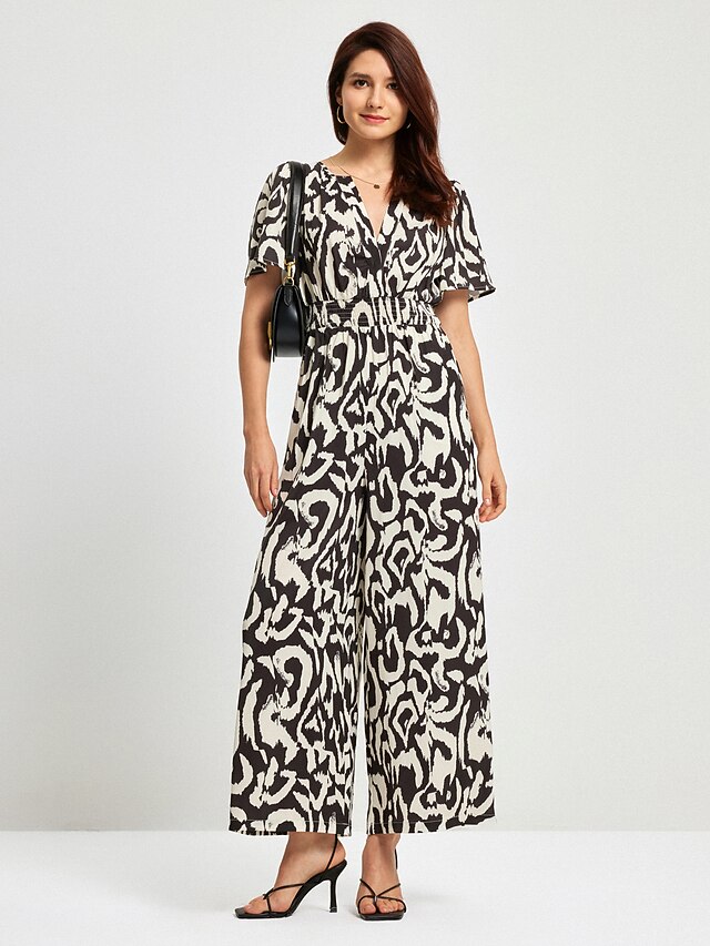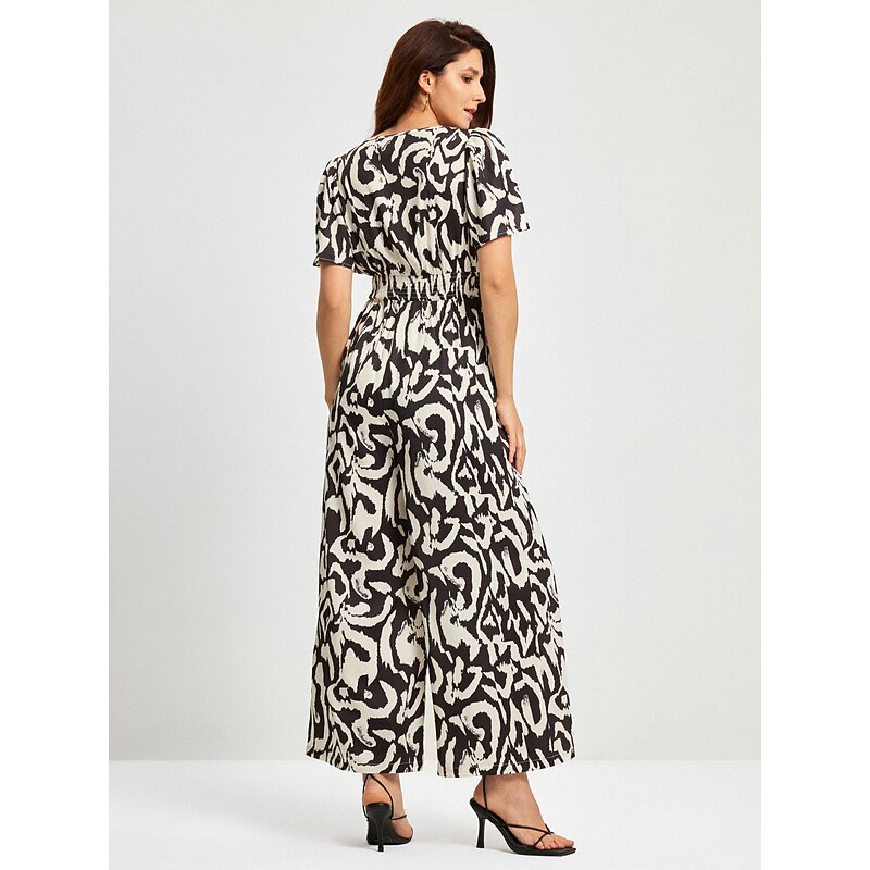 HOT ! Abstract Graffiti V Neck Jumpsuit