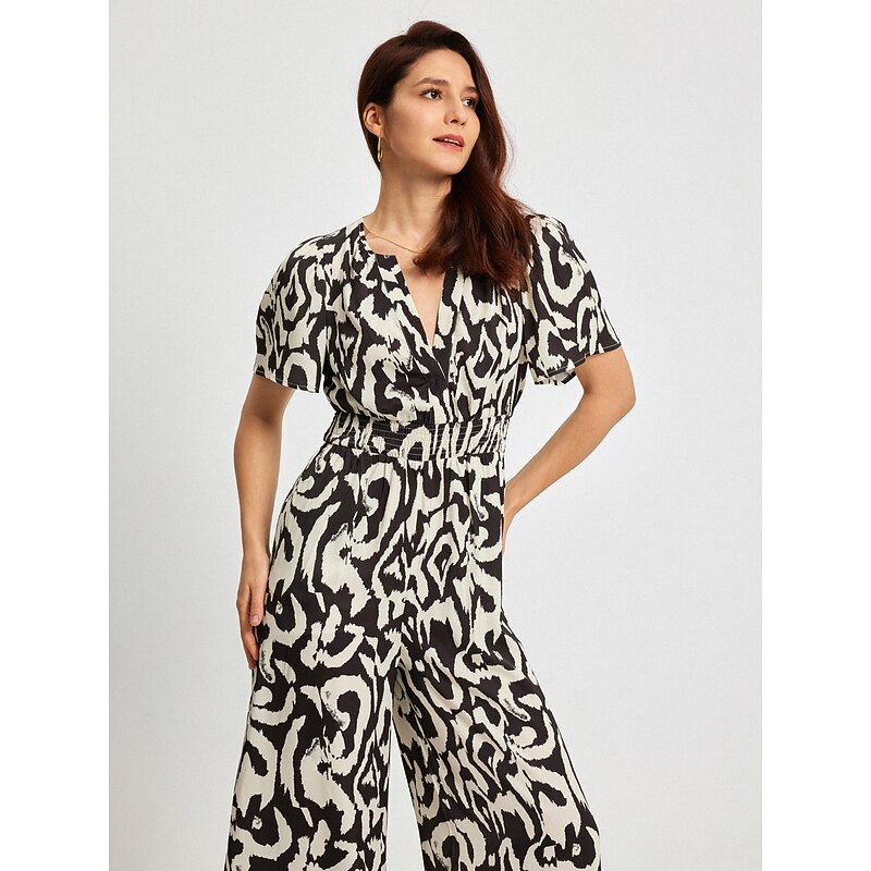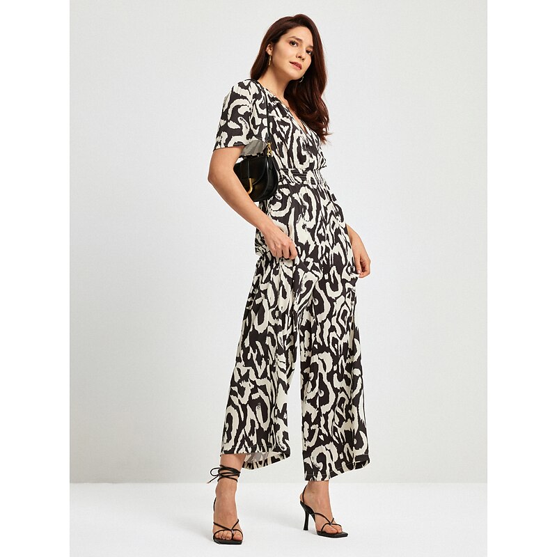 Highlights - High Waist design for a flattering silhouette - Stylish Print for a trendy look - V Neckline adds a touch of elegance - Comfortable Jumpsuit style for easy wear and versatile styling