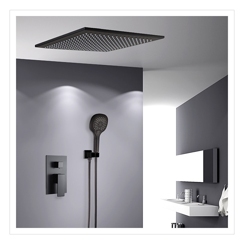 More information about 16 Inch Matte Black Shower Faucets Set, Rainfall Concealed Shower System Solid Brass with 3-Function Handheld, Handshower Ceiling Mounted Combo Set Shower Faucet with Valve Body and Trim