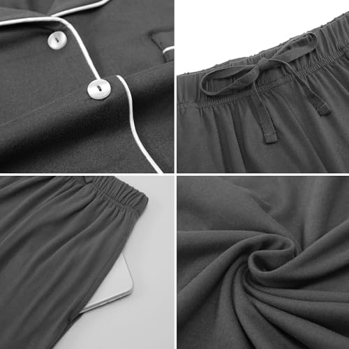 Matching Pajamas for Couples, Button Up Pjs Set for Men and Women Soft Warm Loungewear(Dark Grey Men, X-Large) 5