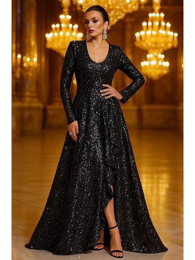 $154.99 - Black Tie A-Line Evening Gown Elegant Formal Dress Formal Wedding Floor Length Long Sleeve Crew Neck Sequined with Glitter 2025 2025. Shop for cheap A-Line Evening Dresses online? Buy at lightinthebox.com on sale today!