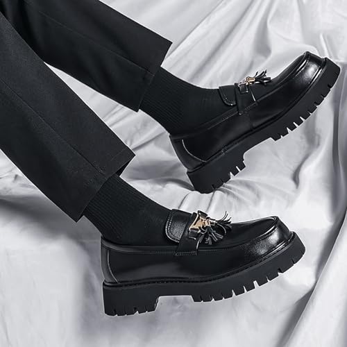 Men's Leather Platform Tassel Slip-On Loafers Fashion Breathable Non-Slip Lug Sole Business Dress Casual Penny Loafers for Business Party Wedding