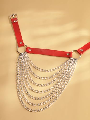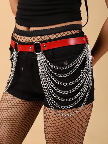Material: PU Leather, MetalGOTH PUNK EMO GRUNGE RED PU LEATHER BELT: This red leather belt is a quintessential accessory for gothic and punk styles, ideal for daily wear or spicing up costumes for Halloween, Christmas, Mother's Day, and cosplay events. Its versatility enhances any punk or goth outfit, making it a staple for edgy wardrobesMETERIALS: high-quality zinc alloy and PU leatherSIZE: This red leather belt comes with an adjustable feature, ensuring a comfortable and snug fit for waist sizes up to 38.9 inches. Its flexibility in size adjustment makes it a practical and chic choice for a wide range of body types, ensuring anyone can complement their outfit with this distinctive accessory. The Belt width is 0.63 inchesIDEAL GIFT CHOICE: This red faux leather belt is an ideal gift for occasions such as Halloween, Christmas, Mother's Day, and various cosplay events, enhancing any punk, goth, or alternative ensemble with its edgy charmAFTER-SALE SERVICE: Your experiences with our product are our top priority. Feel free to contact us if there are any problems with our Goth Punk Red PU Leather Belt , we will fix the problem within 24 hours Perfect for everyday use. first-class materials and excellent craftsmanship ensure long-lasting durability.