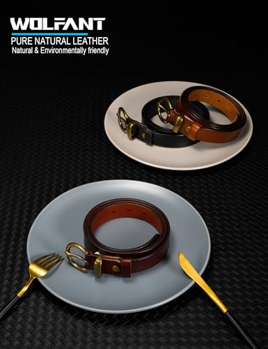 WOLFANT Full Grain Leather Belt for Women,1.1" Ladies Casual leather Jean Belt with Vintage Circle buckle in Gift Box