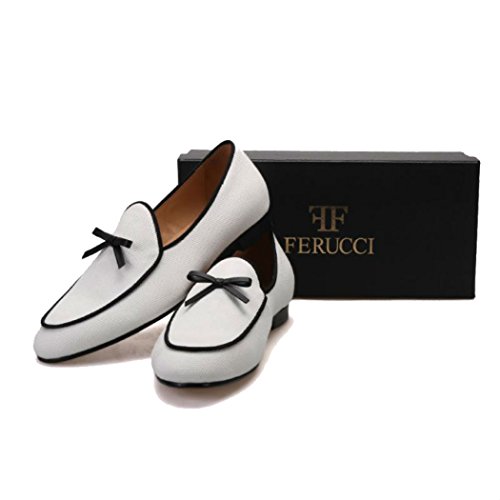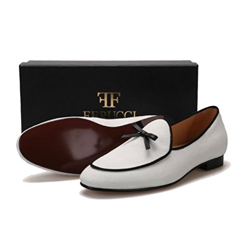 Why Choose FERUCCI Handmade Men White Fabric Loafer with Bow Slippers?
