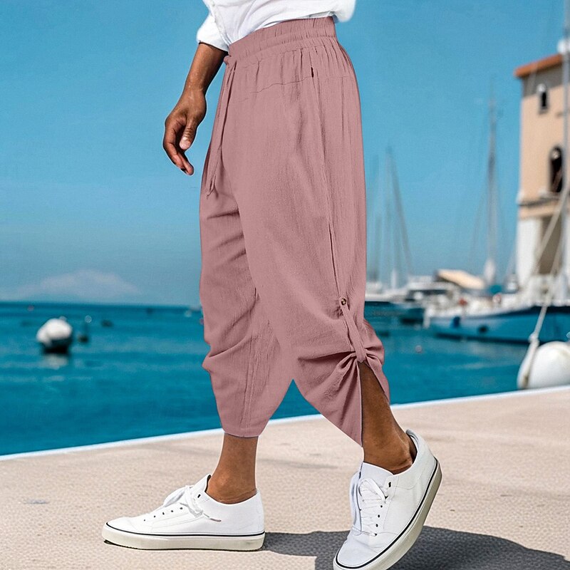 Men's Linen Pants Trousers Summer Shorts Baggy Pants Front Pocket Pleats Straight Leg Plain Comfort Breathable Ankle-Length Outdoor Vacation Party Vacation Fashion Black Pink 19