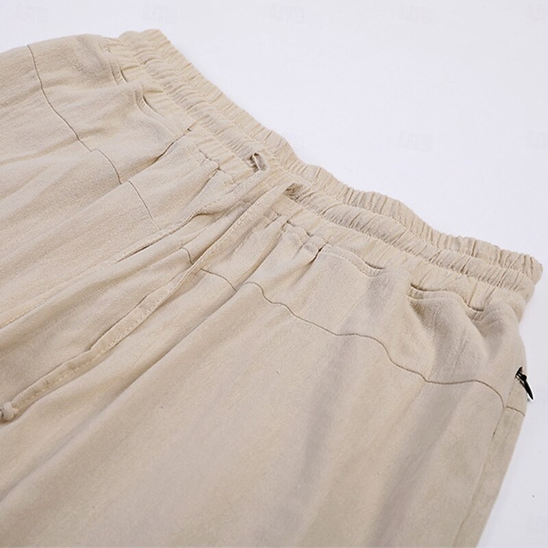 More information about Men's Linen Pants Trousers Summer Shorts Baggy Pants Front Pocket Pleats Straight Leg Plain Comfort Breathable Ankle-Length Outdoor Vacation Party Vacation Fashion Black Pink