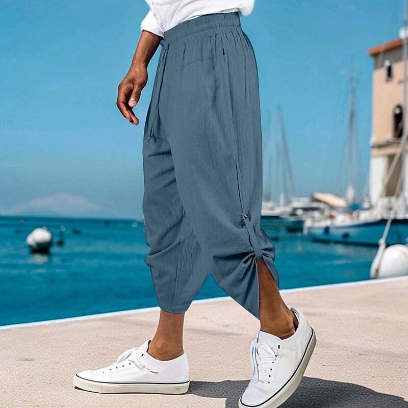 HOT ! Men's Linen Pants Trousers Summer Shorts Baggy Pants Front Pocket Pleats Straight Leg Plain Comfort Breathable Ankle-Length Outdoor Vacation Party Vacation Fashion Black Pink