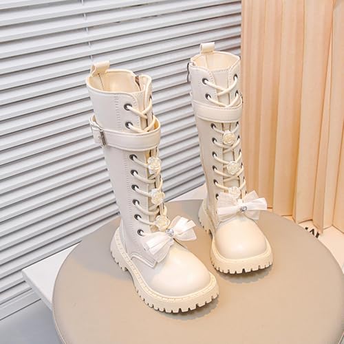 Girl Winter Fall Goth Boot Lace Tie Side Zipper Shoe with Rhinestone Cute Bow PU Leather Shoes Waterproof Boots 6