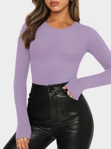 • Premium Fabric: Crafted from a double lined, ultra soft, and smooth high stretch fabric, this crew neck body suit offers breathable lightness and cloud like comfort. Its buttery smooth touch makes it perfect for layering in fall and winter, while the long sleeve thong body suits womens design ensures a sleek, seamless fit