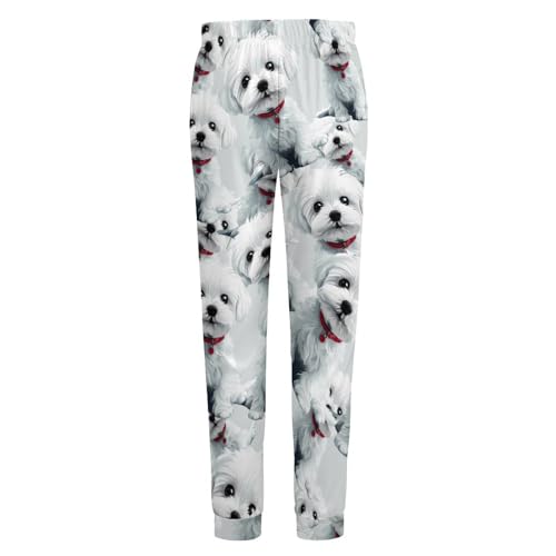 HOT ! Polar Fleece Maltese Dog Cute Puppy Men's Pajama Bottoms Sleep Lounge Soft Comfy Pants Sleepwear
