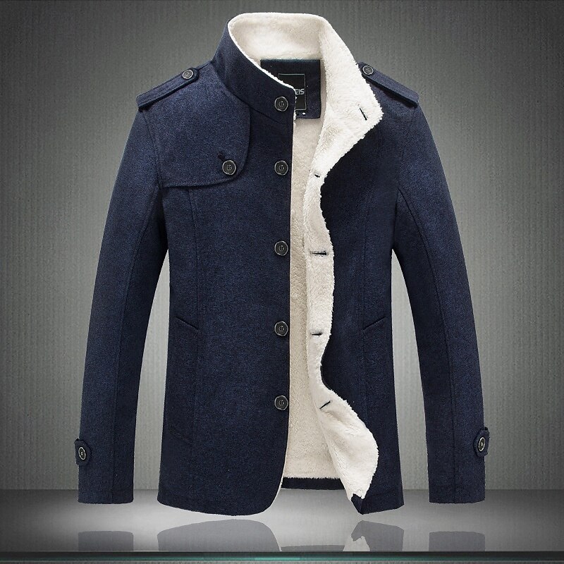 Highlights [Fabric]: Crafted from a durable polyester fabric, this men's winter jacket offers excellent thermal warmth and a cozy fleece interior, perfect for keeping you comfortable throughout the fall and winter seasons. [Fit]: The regular outerwear length and slim-fit silhouette provide a modern, sophisticated look that suits various styles, from casual to fashion-forward streetwear. [Design Highlights]: Featuring a stand collar and a single-breasted placket, this jacket is both fashionable and functional. The military-inspired shoulder epaulets add a touch of character, while the adjustable buttoned cuffs allow for a customizable fit. Convenient pockets add practicality to this sleek design. [Occasions]: Ideal for vacations, daily wear, or an evening out, this jacket is versatile enough for any setting. Whether you're going for a casual look or dressing up for a night out, this piece enhances your style with its plain yet fashion-forward design. [Size Range]: Available in a wide range of sizes, including XS, S, M, L, XL, 2XL, 3XL, and 4XL, ensuring there's a perfect fit for everyone. Choose from classic color options such as Dark Gray, Dark Blue, Light Grey, and Khaki. Perfect for everyday use. superior materials and excellent craftsmanship ensure long-lasting durability.