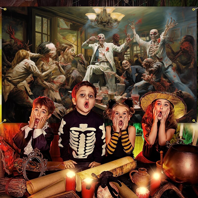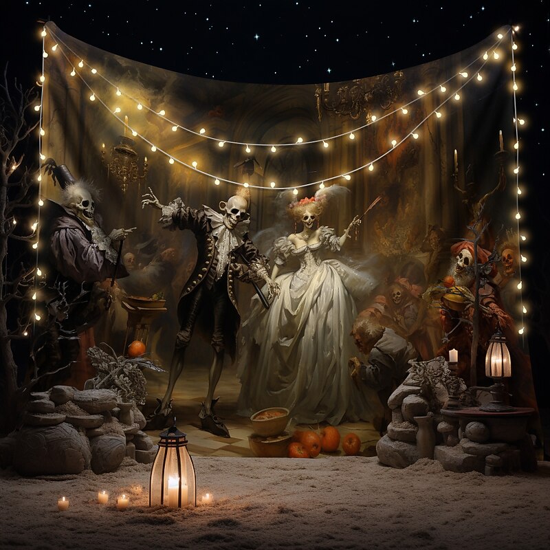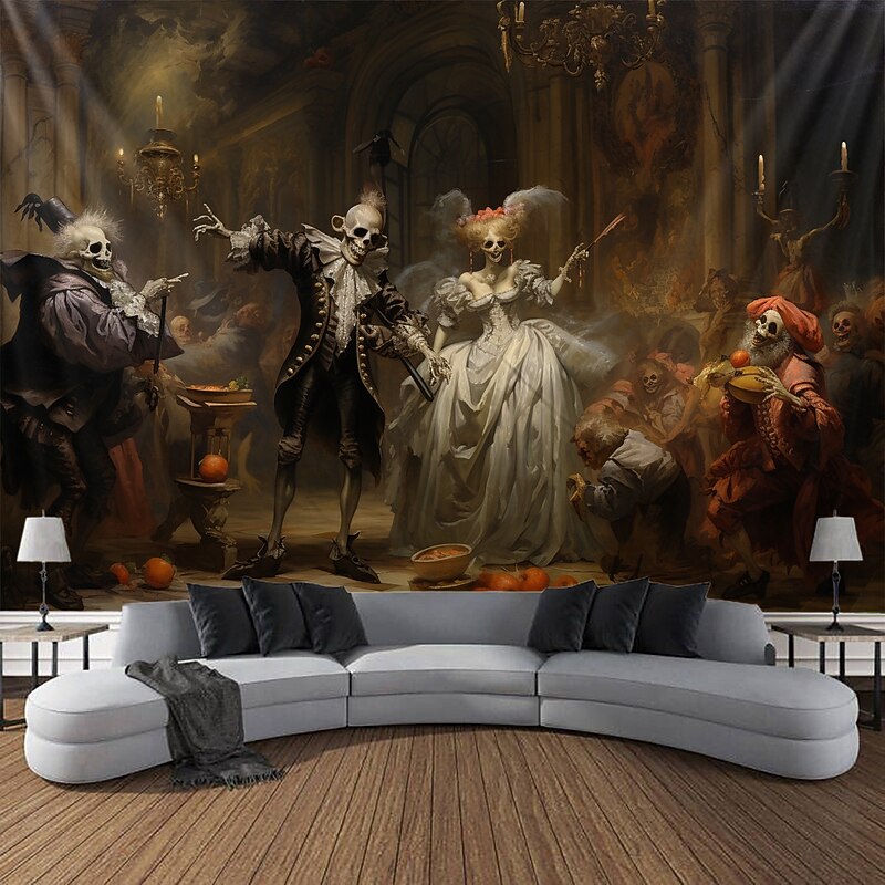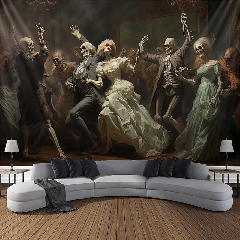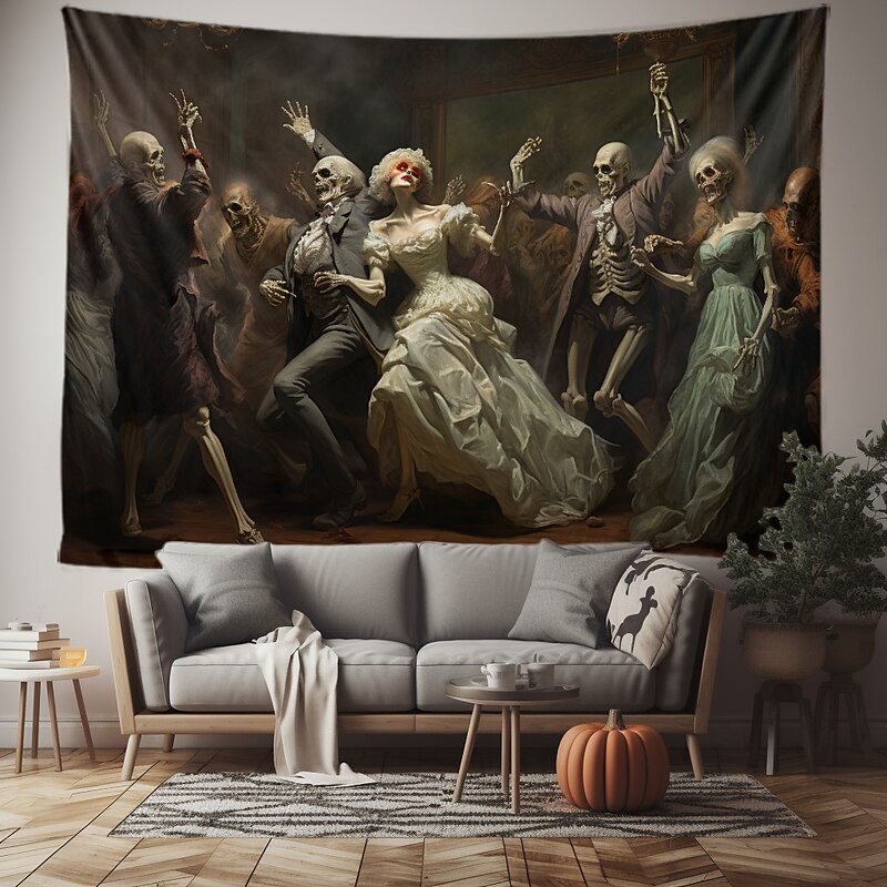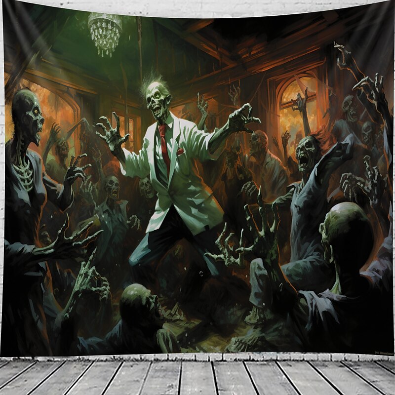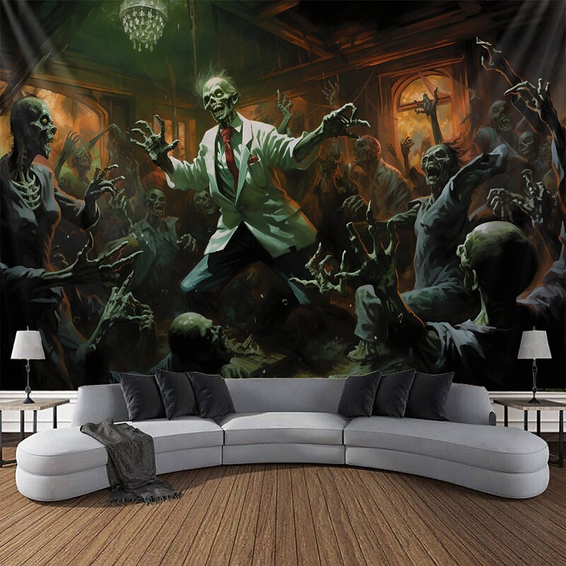 Halloween Party Horror Hanging Tapestry Wall Art Large Tapestry Mural Decor Photograph Backdrop Blanket Curtain Home Bedroom Living Room Decoration Skull Zombie Blood Halloween Decorations