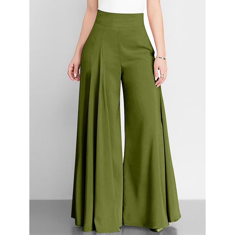 More information about Women's Wide Leg Pants Trousers Fashion Streetwear Full Length High Waist Plain Pocket Ruched Butt Lifting High Cut Comfort Breathability Soft Micro-elastic Vacation Street Daily Camel Grey Black Pink