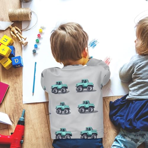 JUNZAN Cartoon Truck Car Grey Little Boys Hoodie Sweatshirt Crewneck Boys Sweat Shirt Party 4T