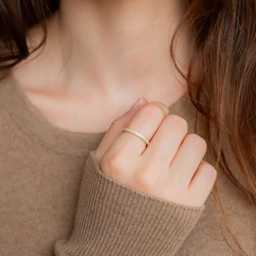 • Everyday Elegance for Women: Polished and lightweight, this minimalist sterling silver ring features a continuous row of shimmering zircon stones that mimic the look of diamonds. It blends beautifully with other rings and makes a lasting impression in any rotation of jewelry rings you wear every day.