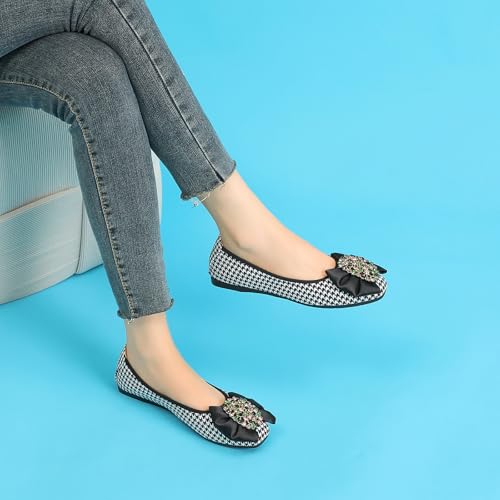 Unifizz Women's Rhinestone Flats SquareToe Flat Heel Wedding Bow Shoes cushy Women Dress Shoes