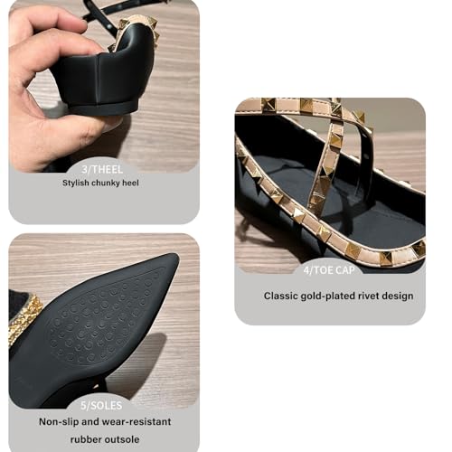 Women's Satin Rivet Cross Strap Flat Pumps Elegant Pointed Toe Heightened Non-Slip Slip-On Date Night Wedding Flats