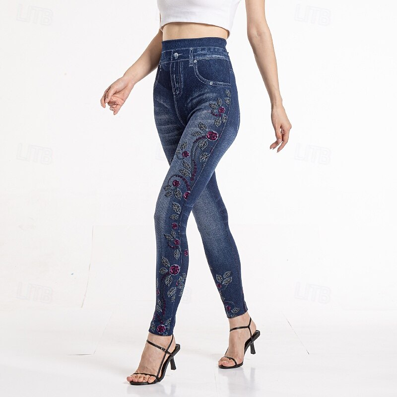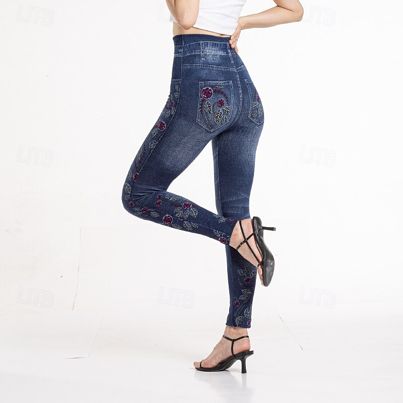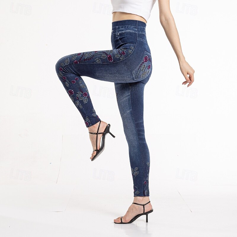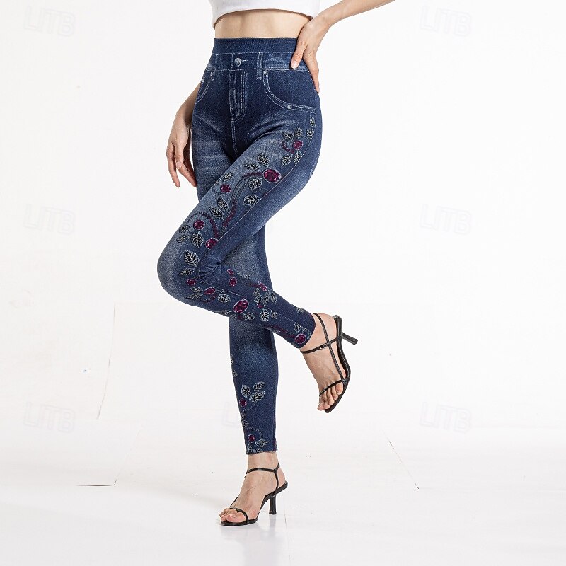 HOT ! Women's Slacks Leggings Cozy Leggings Streetwear Casual Full Length Natural Flower Pocket Printing Comfortable Outdoor Vacation Street Blue Fall Regular Fit