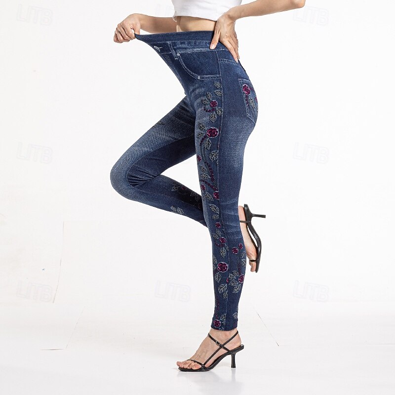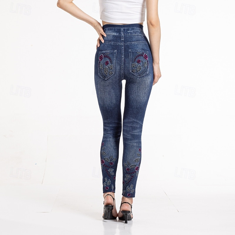More information about Women's Slacks Leggings Cozy Leggings Streetwear Casual Full Length Natural Flower Pocket Printing Comfortable Outdoor Vacation Street Blue Fall Regular Fit