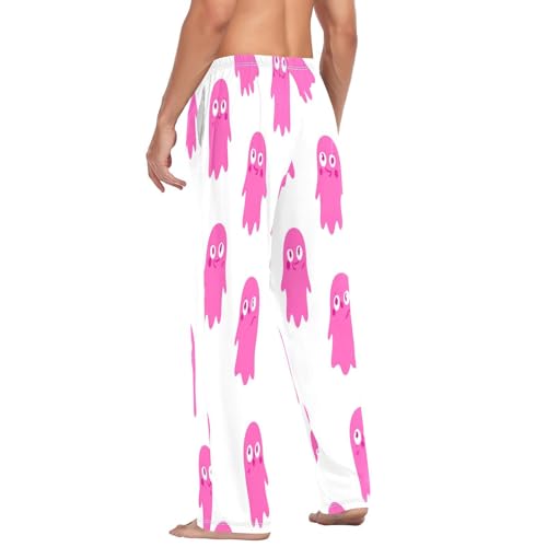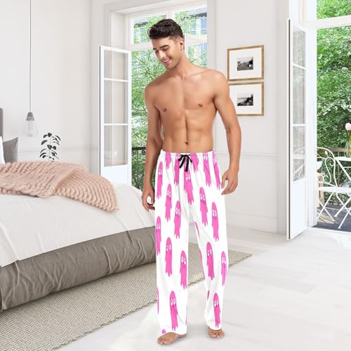 Qilmy Pink Ghosts Men's Cotton Pajama Pants, Lightweight Lounge Sleepwear with Drawstring and Pocket