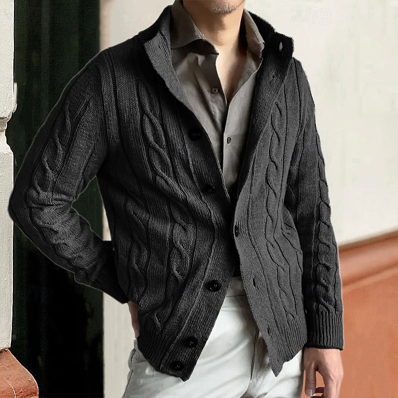 Men's Dress Sweater Cardigan Sweater Cable Knit Regular Button Up Solid Color Fashion Classic Daily Wear Date Clothing Apparel Fall & Winter Black khaki M L XL 1