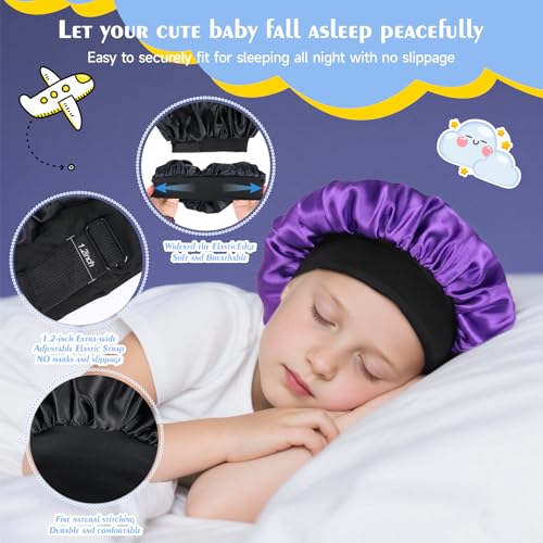 Kids Bonnets for Girls Silk Bonnet for Kids Double Layer Satin Bonnet Adjustable Toddler Sleep Cap(Black and Purple) 6