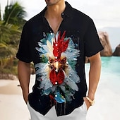 More information about Men's Animal Rooster Shirt Summer Hawaiian Shirt Button Up Shirt Short Sleeve Hawaiian Holiday Beach Wear Summer Spring Turndown 3D Print Collared Shirts Front One Pocket Black
