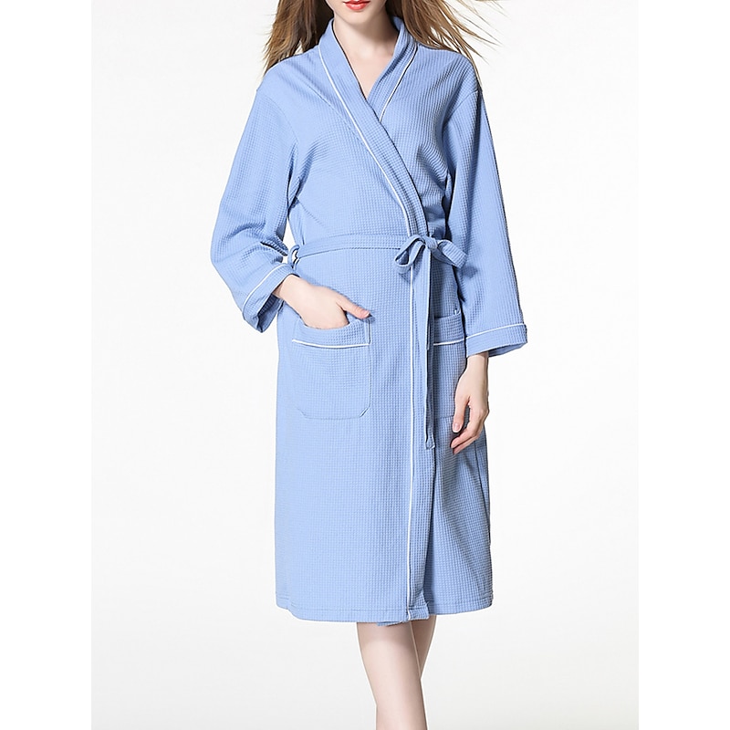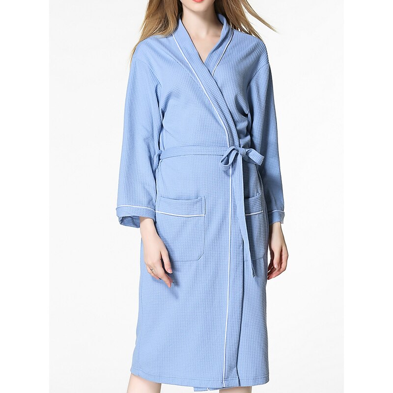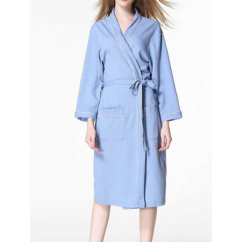 More information about Women's Pajamas Bathrobe Pure Color basic Casual Comfort Home Bed Wedding Party Cotton Terry Breathable V Wire Long Sleeve Pocket Fall Winter Home Outfits