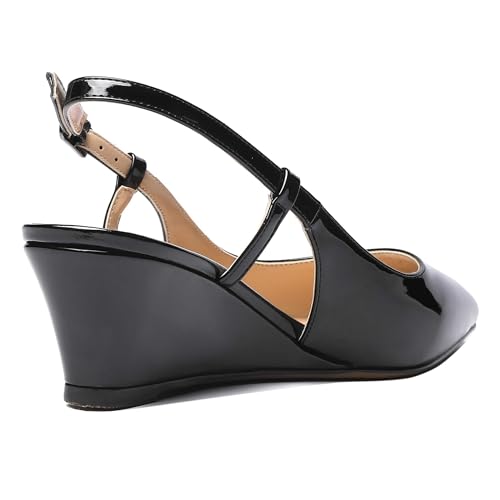 MODENCOCO Women's Dating Buckle Slingback Pointed Toe Patent Casual Wedge Low Heel Pumps Shoes 2 Inch