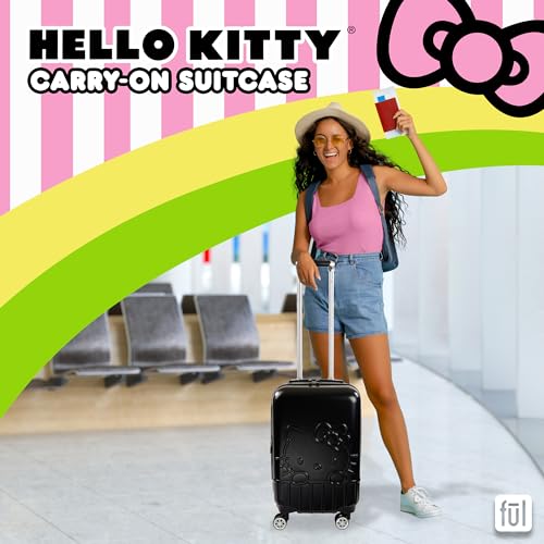 ful Hello Kitty Carry On Luggage, Molded Hardshell Rolling Suitcase with Spinner Wheels, Black, 21 Inch