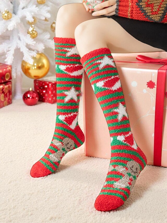 $11.99 - Women's Christmas Fuzzy Knee High Socks, Warm Cozy Winter Homewear Stockings with Festive Red Green Star Pattern for Holiday Lounging & Gifts 2025. Shop for cheap Christmas Accessories online? Buy at lightinthebox.com on sale today!