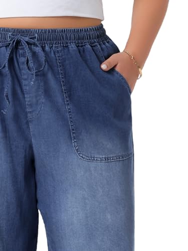 More information about Agnes Orinda Plus Size Women's Wide Leg Jeans Chambray Elastic Waist Baggy Loose Fit Denim Pants with Pockets