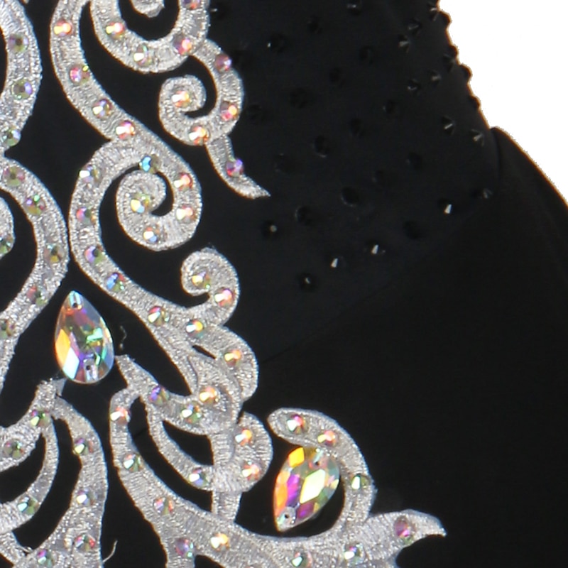 - The garment is embellished with dazzling rhinestones to add a touch of glamour and elegance.