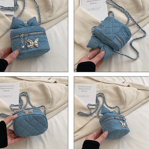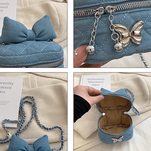 trending ! Bow Purse Quilted Denim Bow Purse Jean Box Bag Mini Crossbody Shoulder Bag Zipper Lightweight Trendy Gift Women