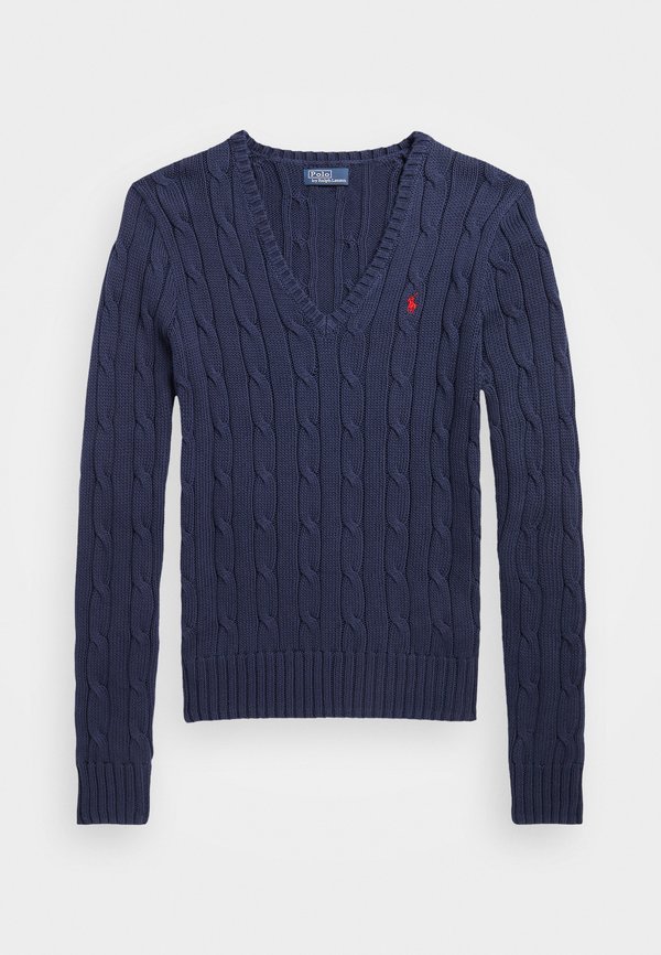 trending ! CABLE KNIT COTTON V NECK SWEATER - Jumper - marine