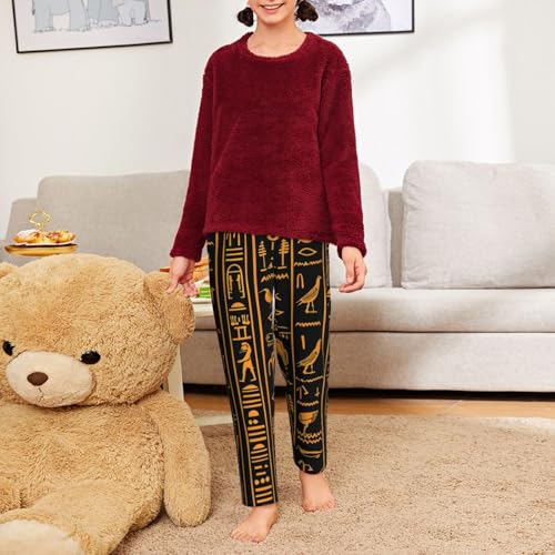 Ancient Egyptian Hieroglyph Pajama Pants, Vintage Lounge Pants Comfy supple Elastic Waist Sleepwear Bottoms with Pockets