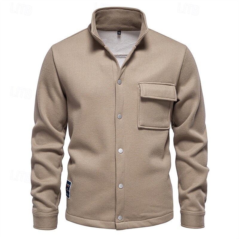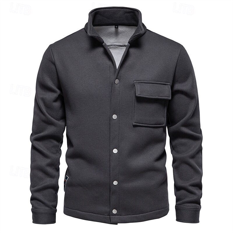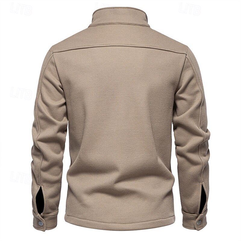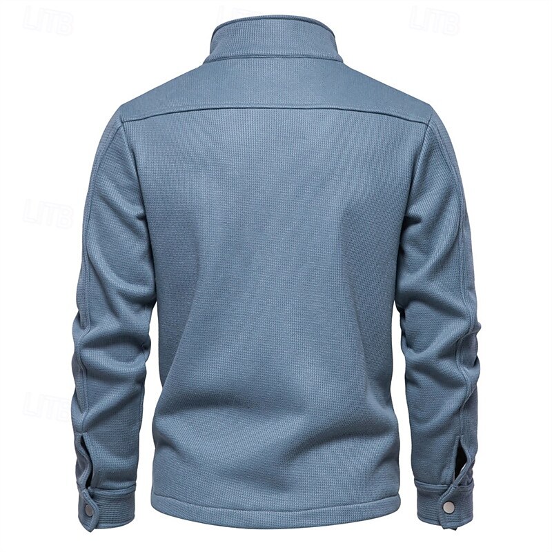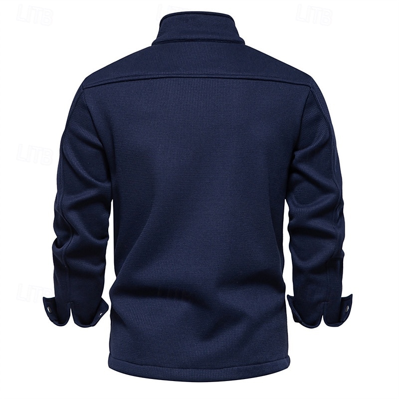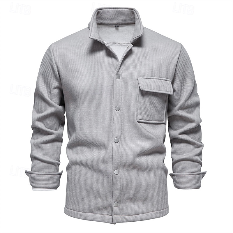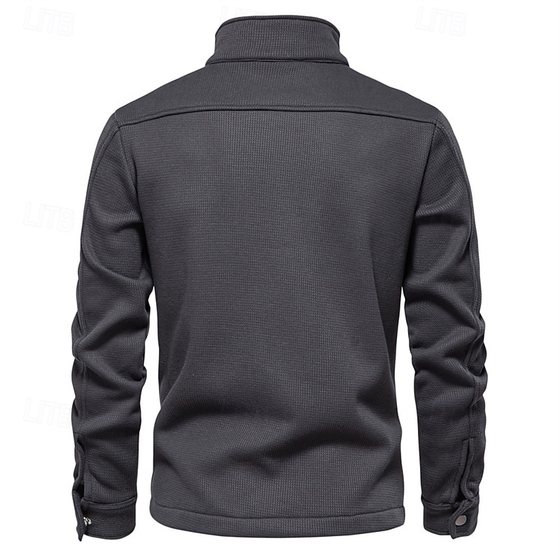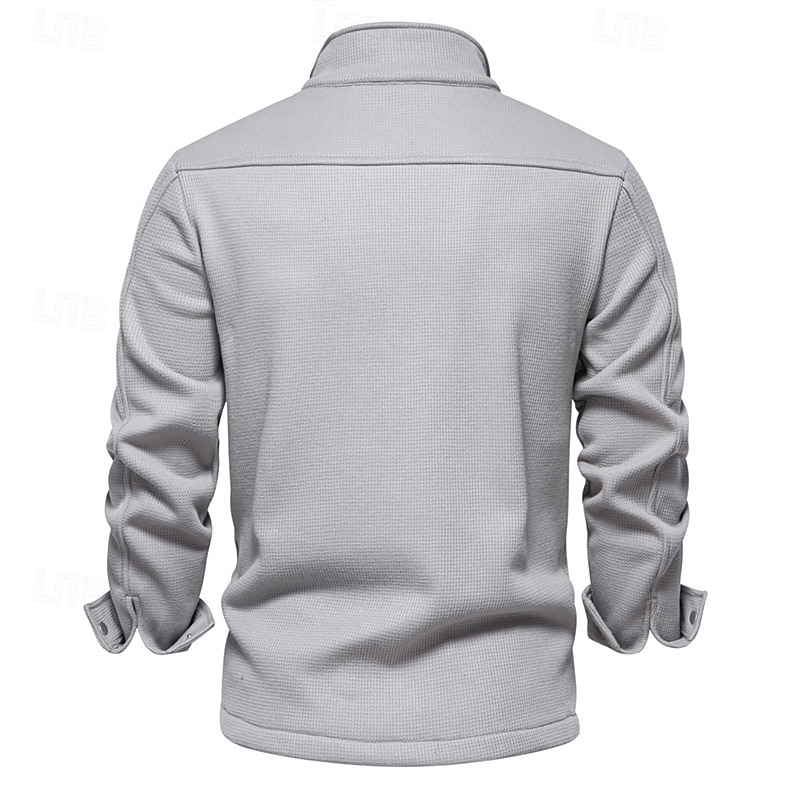 More information about Men's Waffle Jacket Fleece Jacket Cargo Jacket Casual Jacket Vacation Daily Warm Pocket Fall Winter Plain Fashion Classic Lapel Regular Black White Navy Blue Blue Khaki Jacket