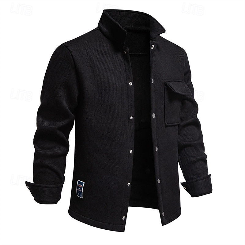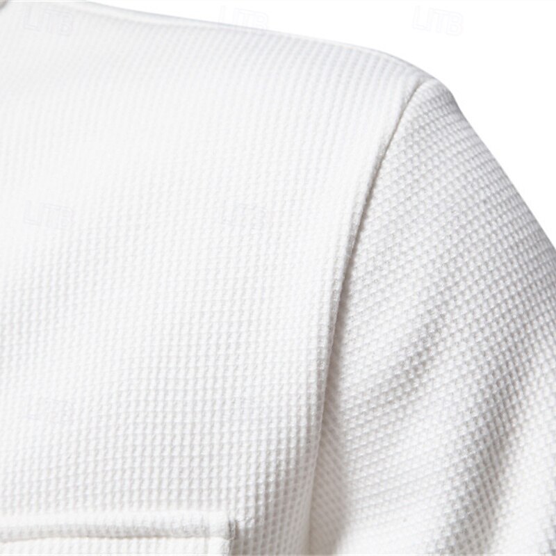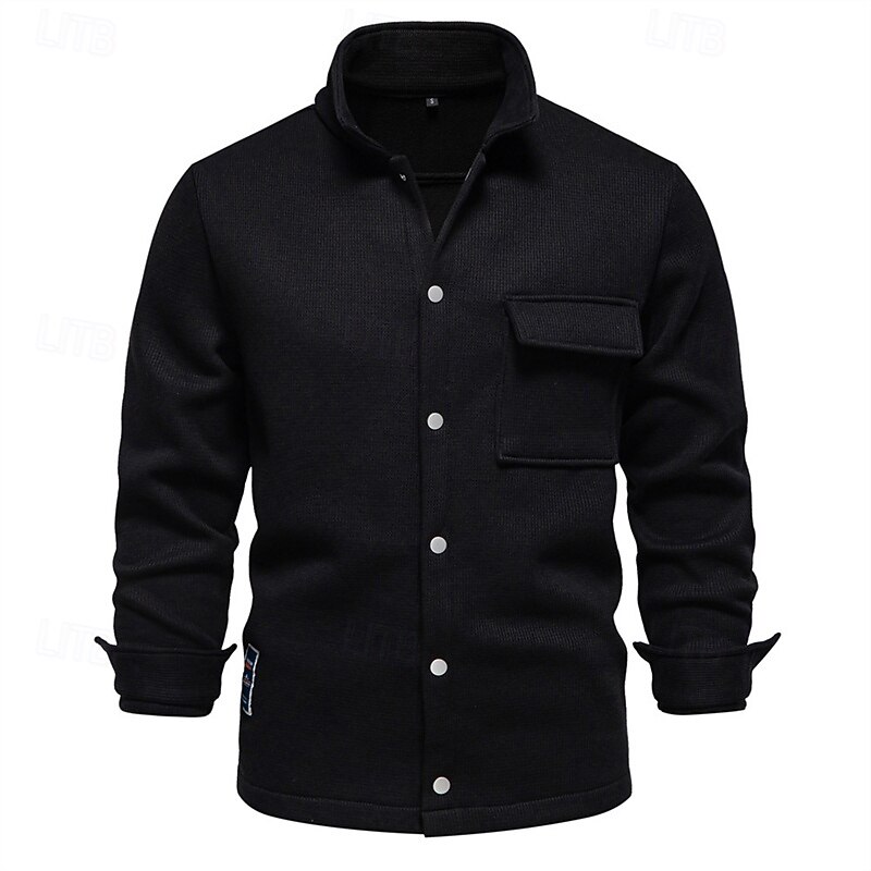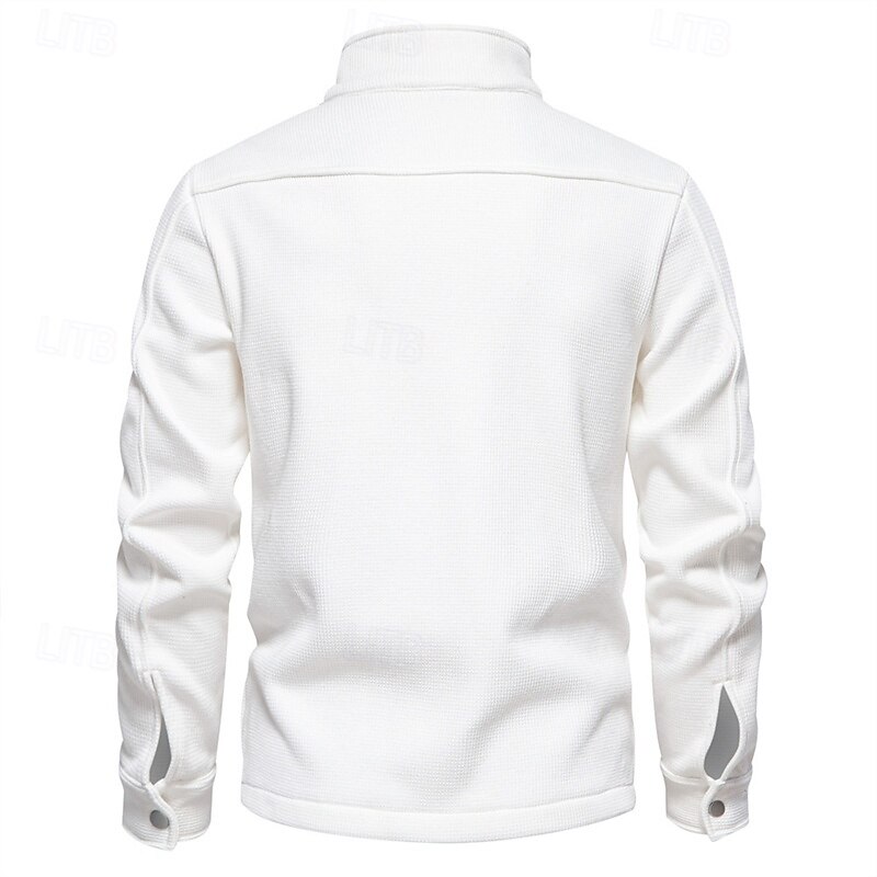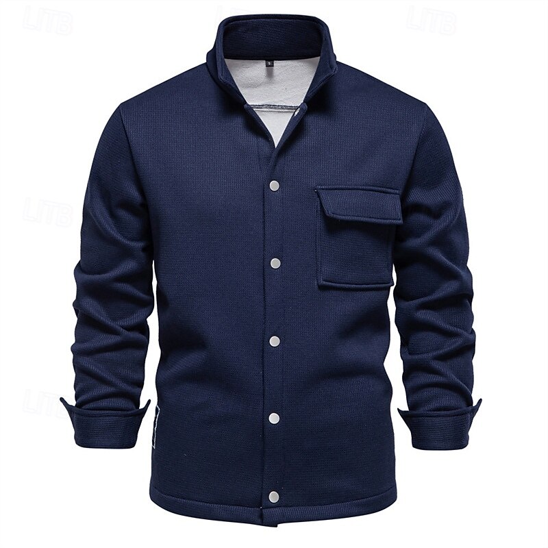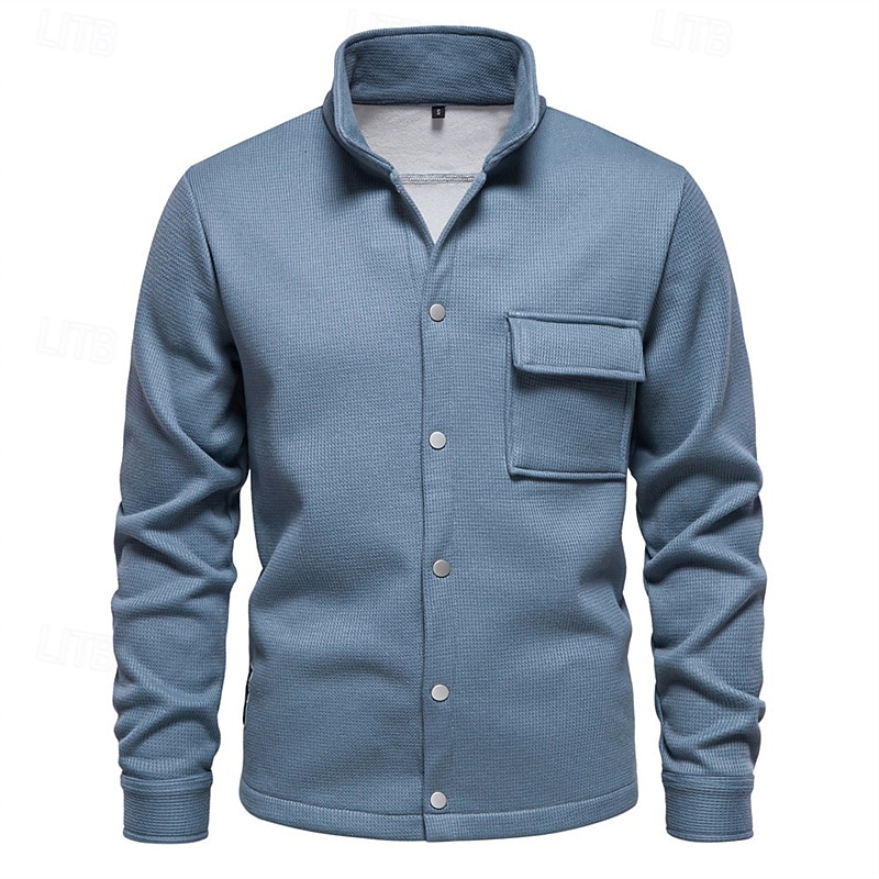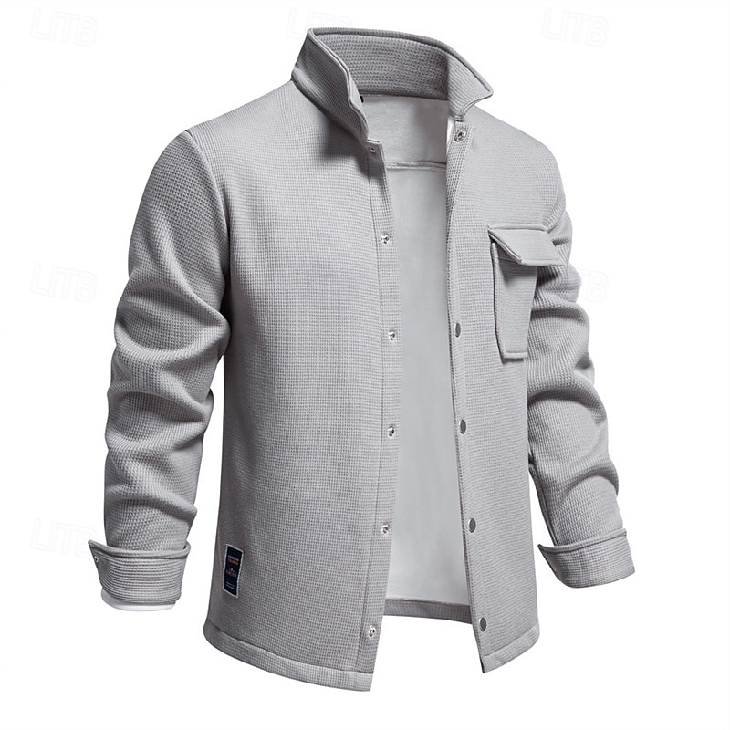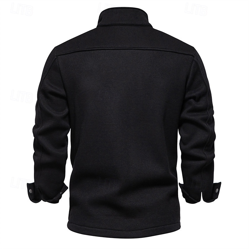 More information about Men's Waffle Jacket Fleece Jacket Cargo Jacket Casual Jacket Vacation Daily Warm Pocket Fall Winter Plain Fashion Classic Lapel Regular Black White Navy Blue Blue Khaki Jacket