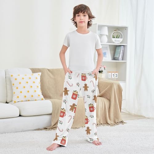 HOT ! Boys' Pants Christmas Cup Gingerbread Man Candy Long Bottoms Jogger Pants Elastic Waist Trousers with Pockets S-XL