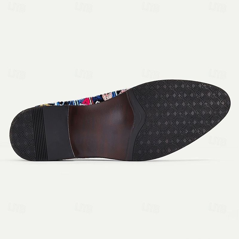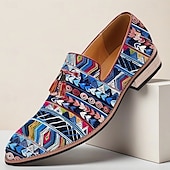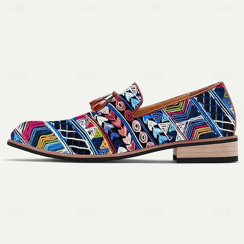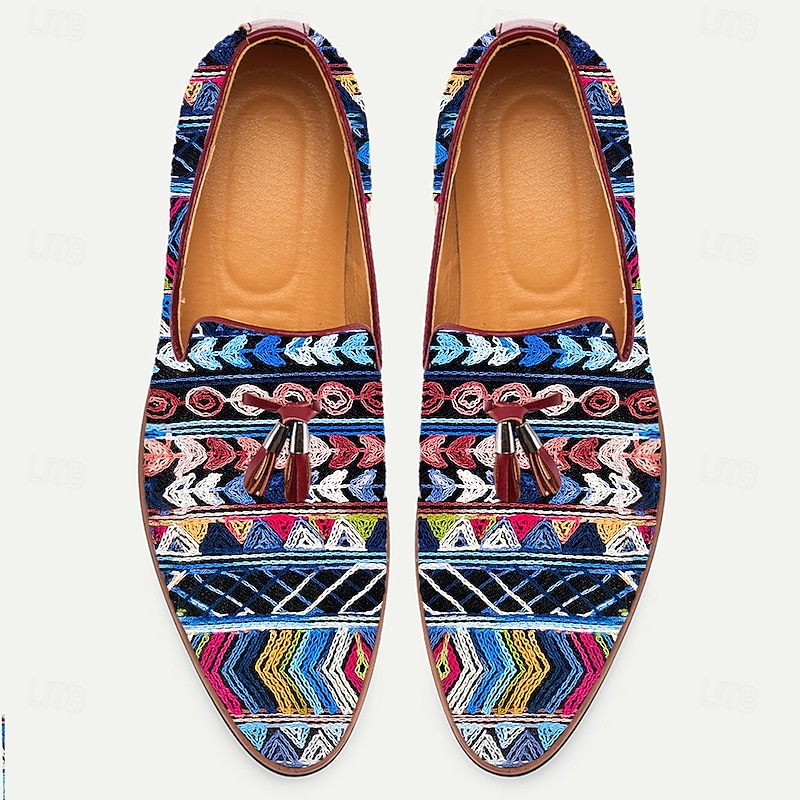trending ! Men's Ethnic Pattern Jacquard Loafers with Faux Leather Accents, Boho Style Slip-Ons for Art Shows, Summer Weddings and Creative Professionals