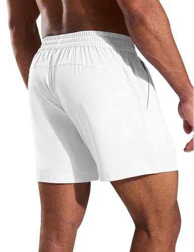 MIER Running Gym Shorts for Men 5 Inch Quick Dry Athletic Workout Shorts with Zipper Pockets, Elastic Waist, No Liner 5