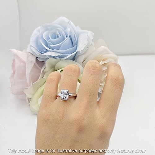 OMRANII 8mmX6mm Elongated Emerald Cut Beautiful Bezel Set Classic Engagement Anniversary Statement Ring Cubic Zirconia Stones 925 Sterling Silver 4