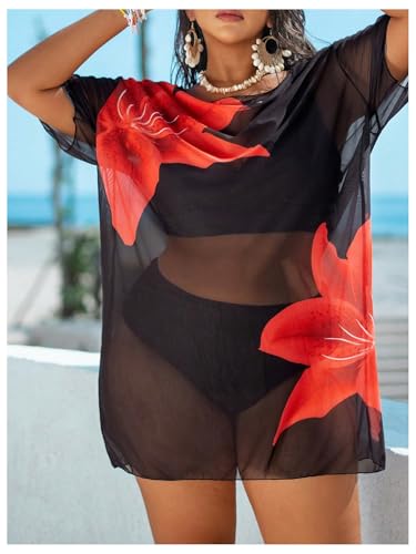 • Features: See through, floral print, short sleeve, round neck, sheer coverups, beach dress