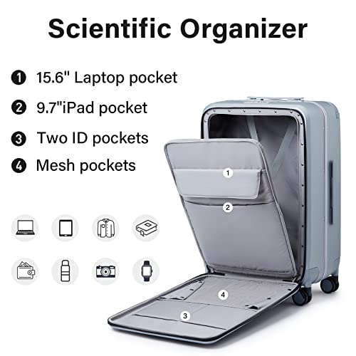 MILADA Wide Handle Luggage with Front Pocket Hardshell Aluminium Check In Suitcase with Wheels Medium 24 Inch Front Opening Checked Luggage with Spinner Wheels TSA Lock Airline Approved Luggage, Grey