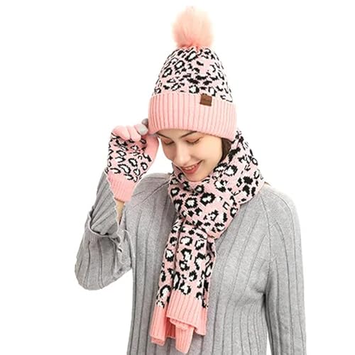trending ! Winter Hat Scarf Gloves Set - comfortable Knit Beanie With Cute Leopard Print, Cozy Knitted Hat, Cold Weather Scarf & Gloves Set | snug Cold Weather Hat Scarf Gloves Set, Winter Accessories For Women