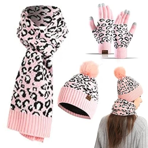 More information about Winter Hat Scarf Gloves Set - comfortable Knit Beanie With Cute Leopard Print, Cozy Knitted Hat, Cold Weather Scarf & Gloves Set | relaxing Cold Weather Hat Scarf Gloves Set, Winter Accessories For Women